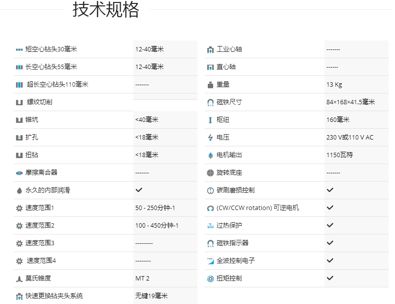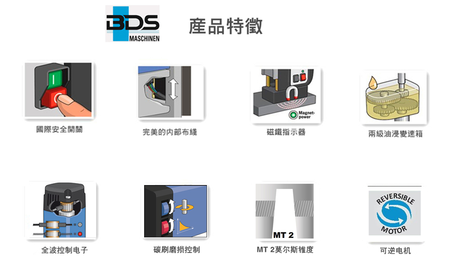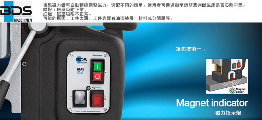 介紹:ProfiPLUS類別的德國制造磁力鉆孔機主要供工廠和機械工程的用戶使用。 MAB 485 ProfiPLUS課程的最佳入口:在工作坊和外出工作中不可或缺。 MAB 485的優(yōu)點 - 連續(xù)電子控制電機輸出和速度。鉆芯和麻花鉆,counters孔,鉸孔,螺紋切削。兩級齒輪箱,非破壞性的油浴變速箱。用于車間和裝配應用的多功能磁力鉆孔機。功能強大且可靠的105安培雙絕緣電機。 17-14“高,29磅高速變速油浴變速箱,適用于環(huán)形切割機和麻花鉆。專為連續(xù)使用而設計。智能電子扭矩控制。鉆至2”直徑,最大可達1516“直徑。環(huán)形切割器扭曲鉆孔直徑達78“。攻絲能力為316“至1516”Dia。綜合切削油藏。自動內部潤滑。旋轉底座(型號MAB 485 SB)。無鍵鉆夾頭。集成安全:綠色/紅色LED磁力指示器,安全操作。內部電纜布線。簡單的符合人體工程學的控制裝置,用于單手操作緊急關閉功能。